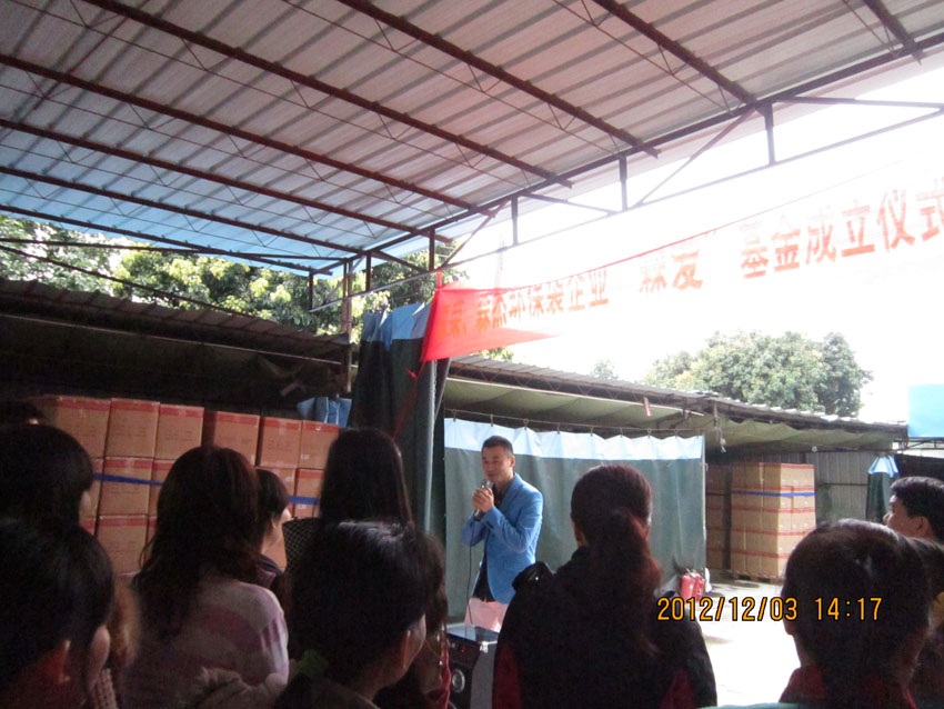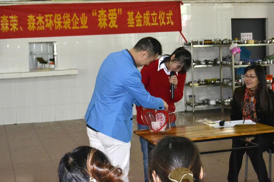 2012年12月3日這一天廣州市森榮手袋制造有限公司、廣州森杰無紡布制品實業有限公司正式成立“森愛基金”。
